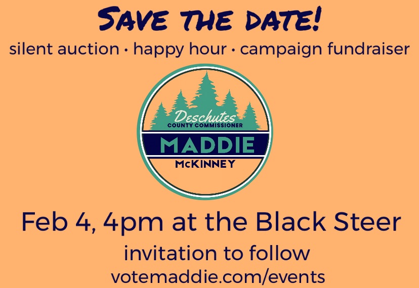RSVP to secure your spot or offer a donation for the silent auction: maddiefordeschutes@gmail.com